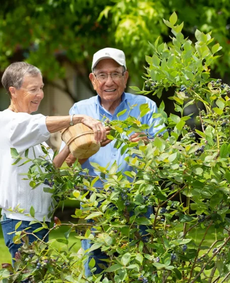 Residents have access to a variety of amenities, including a library, landscaped grounds with walking paths, exercise classes, a gym, and participation in a robust activities program.